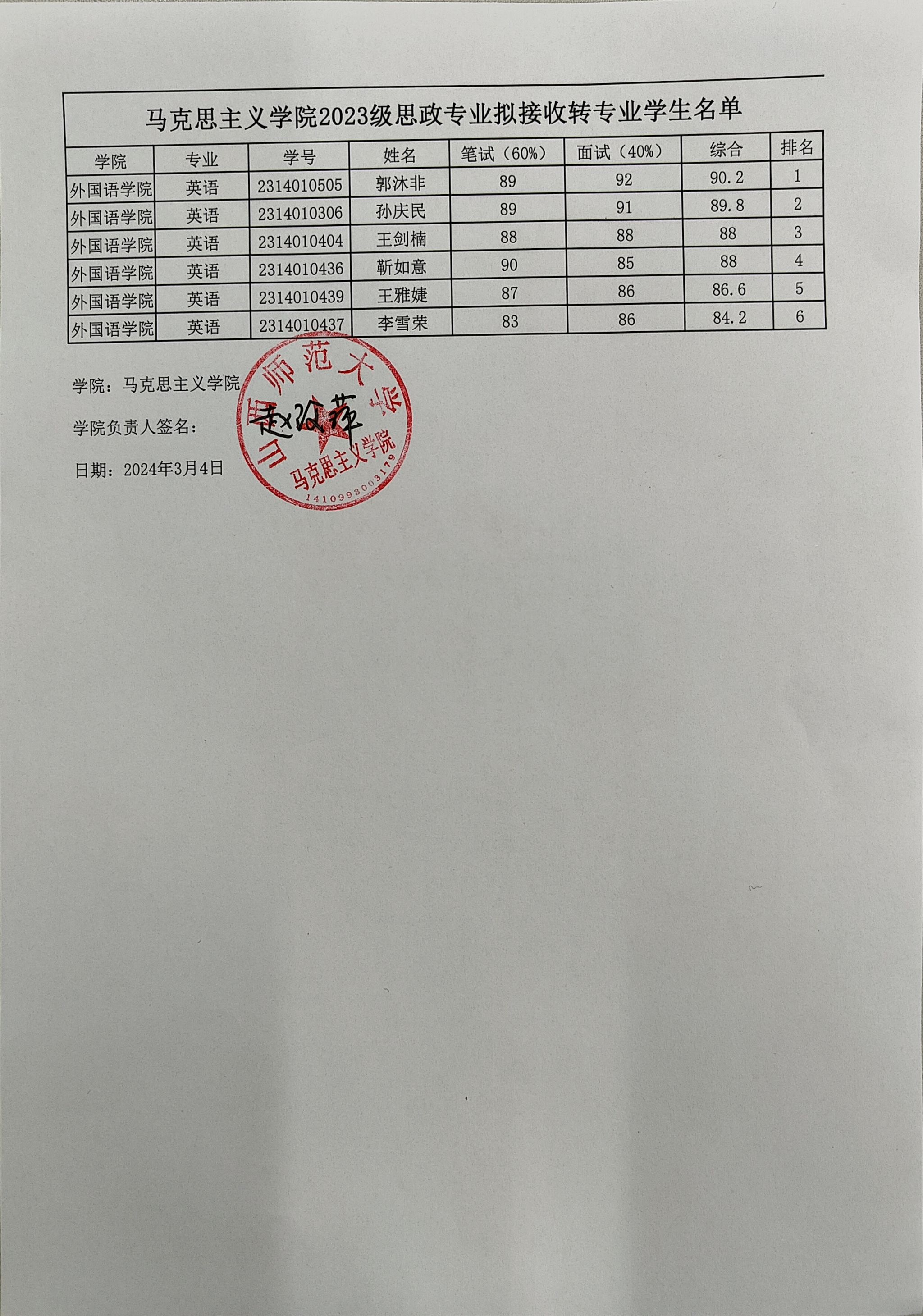 老虎机游戏下载 2023级思政专业拟接收转专业学生名单